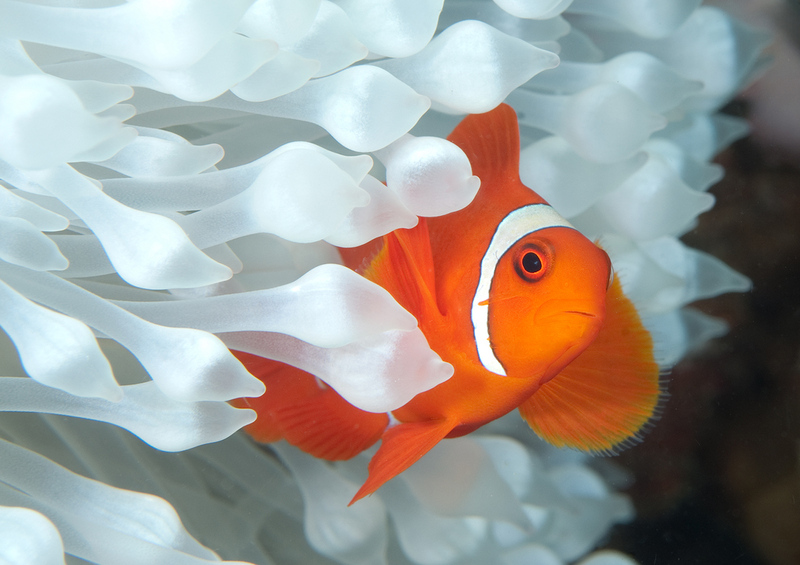 2 Spine cheek Anemone fish in bleached coral
